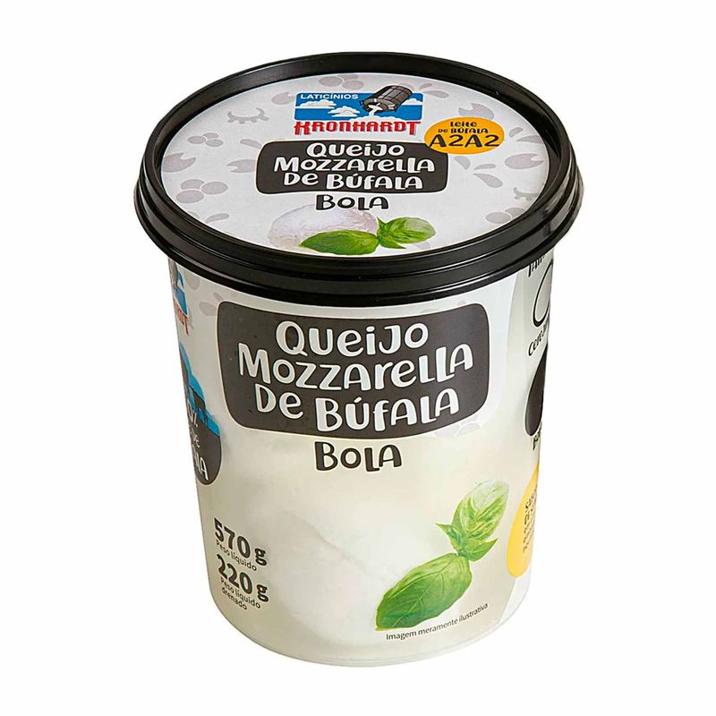 Queijo Mozzarella de Búfala Bola, da marca Kronhardt, em embalagem de 220 gramas. Com sabor suave, ligeiramente adocicado, possui textura cremosa. Em formato arredondado, pode ser consumido inteiro ou em pequenos pedaços, de acordo com a preferência. Combina com diferentes pratos, é como saladas, como a clássica Caprese, e ideal para pizzas, bruschettas e pratos gratinados. Também é excelente em pratos frios, como antepastos e tábuas de queijos, além de ser um complemento sofisticado para sanduíches e wraps. Vinhos brancos secos, como Chardonnay ou Sauvignon Blanc, e espumantes leves são bebidas que fazem uma boa harmonização com esse queijo. Sua porção de 40 gramas possui valor energético de 112 kcal, 7,1 gramas de proteínas e 42 miligramas de sódio. Mantenha o queijo refrigerado para preservar sua frescura.