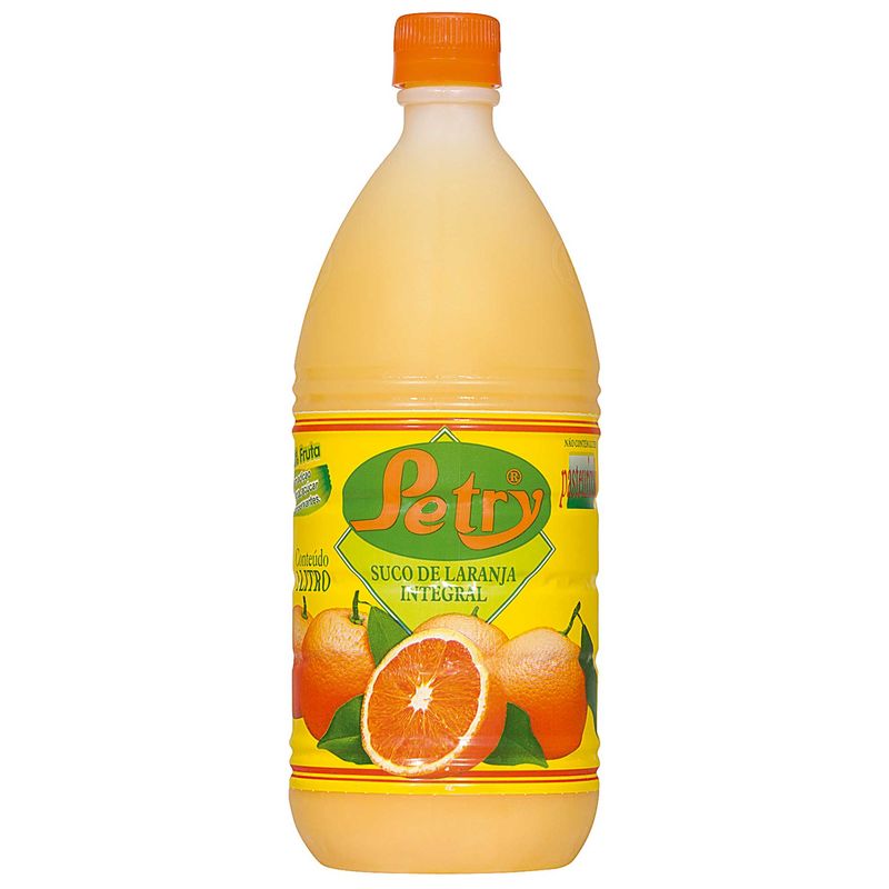 Suco de Laranja Integral, da marca Petry, em garrafa com 1 litro. É um produto 100% natural, sem adição de água, açúcar ou aditivos. É elaborado a partir de frutas rigorosamente selecionadas e higienizadas. Com baixo teor calórico, é excelente fonte de vitamina "C", que atua como antioxidante e fortalece o sistema imunológico. É uma bebida refrescante com o delicioso sabor da fruta, que pode ser consumido a qualquer hora do dia, em especial no almoço e no jantar. É perfeito para acompanhar sanduíches e salgados em lanches ao longo da jornada diária. Pode também ser usado em receitas de marinadas, molhos e sobremesas, como gelatinas e sorvetes. É frequentemente consumido gelado, podendo também ser degustado em temperatura ambiente. Em sua porção de 200 mililitros (1 copo) contém 120 kcal, 16 gramas de carboidratos e 4 gramas de proteínas. Não apresenta valores significativos de sódio.